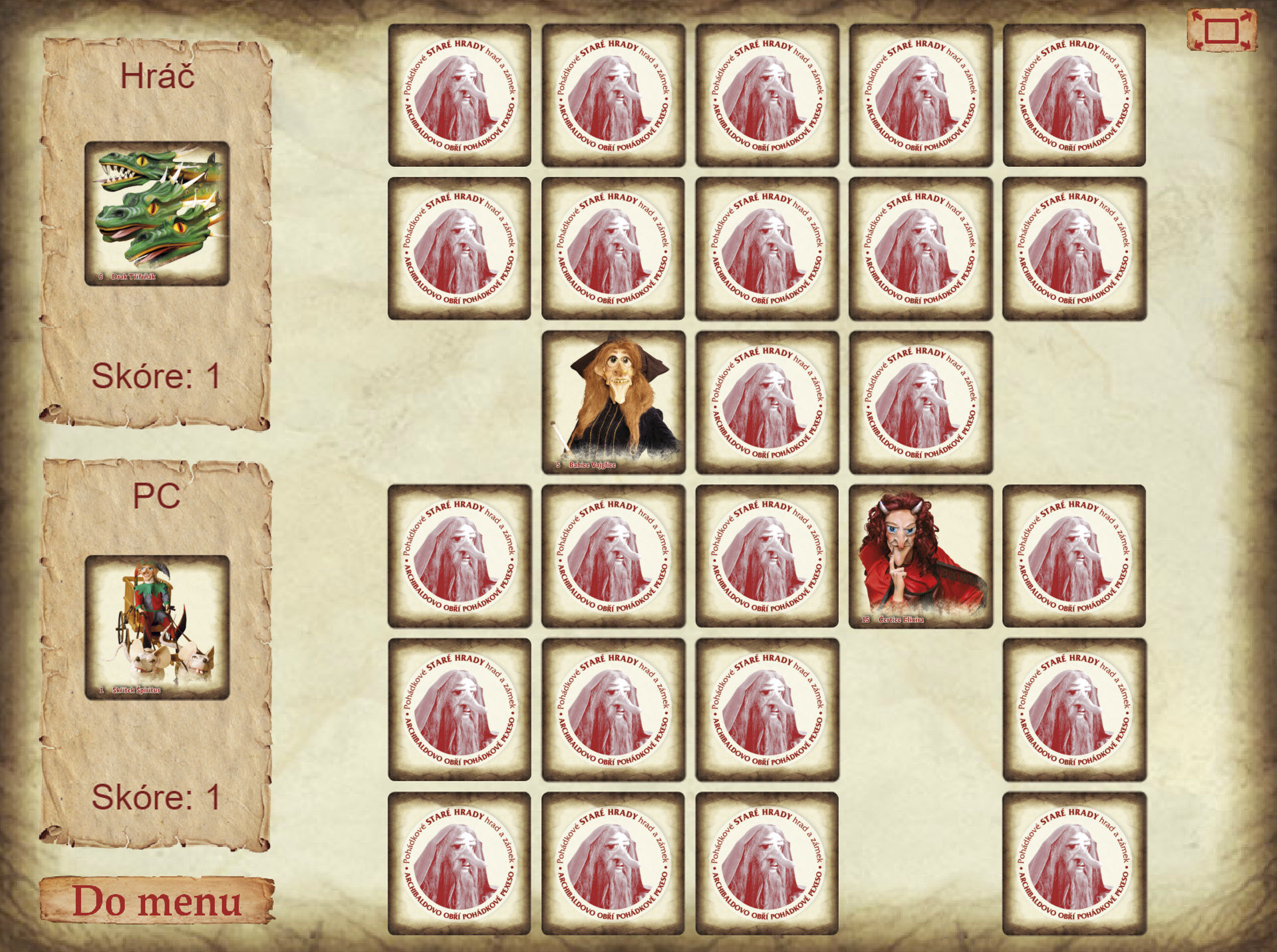 Při výběru kartiček se zobrazují jména jednotlivých postav, a tak se s nimi může uživatel lépe seznámit.
